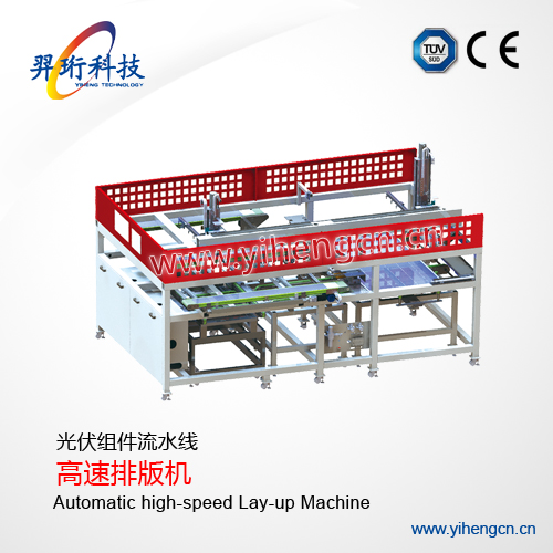 將自動串焊機(jī)串焊好的電池串,按照工藝尺寸要求和排版方向順序自動排版鋪設(shè)到玻璃/EVA上,組成電池串陣列。