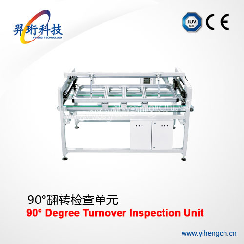 位于組件自動(dòng)線的層壓后和EL檢測(cè)前,主要功能是將層壓好的組件進(jìn)行翻轉(zhuǎn)便于操作工對(duì)組件質(zhì)量進(jìn)行檢查,操作工可以根據(jù)需要選擇手動(dòng)翻轉(zhuǎn)、自動(dòng)翻轉(zhuǎn)和無需翻轉(zhuǎn)三種功能。